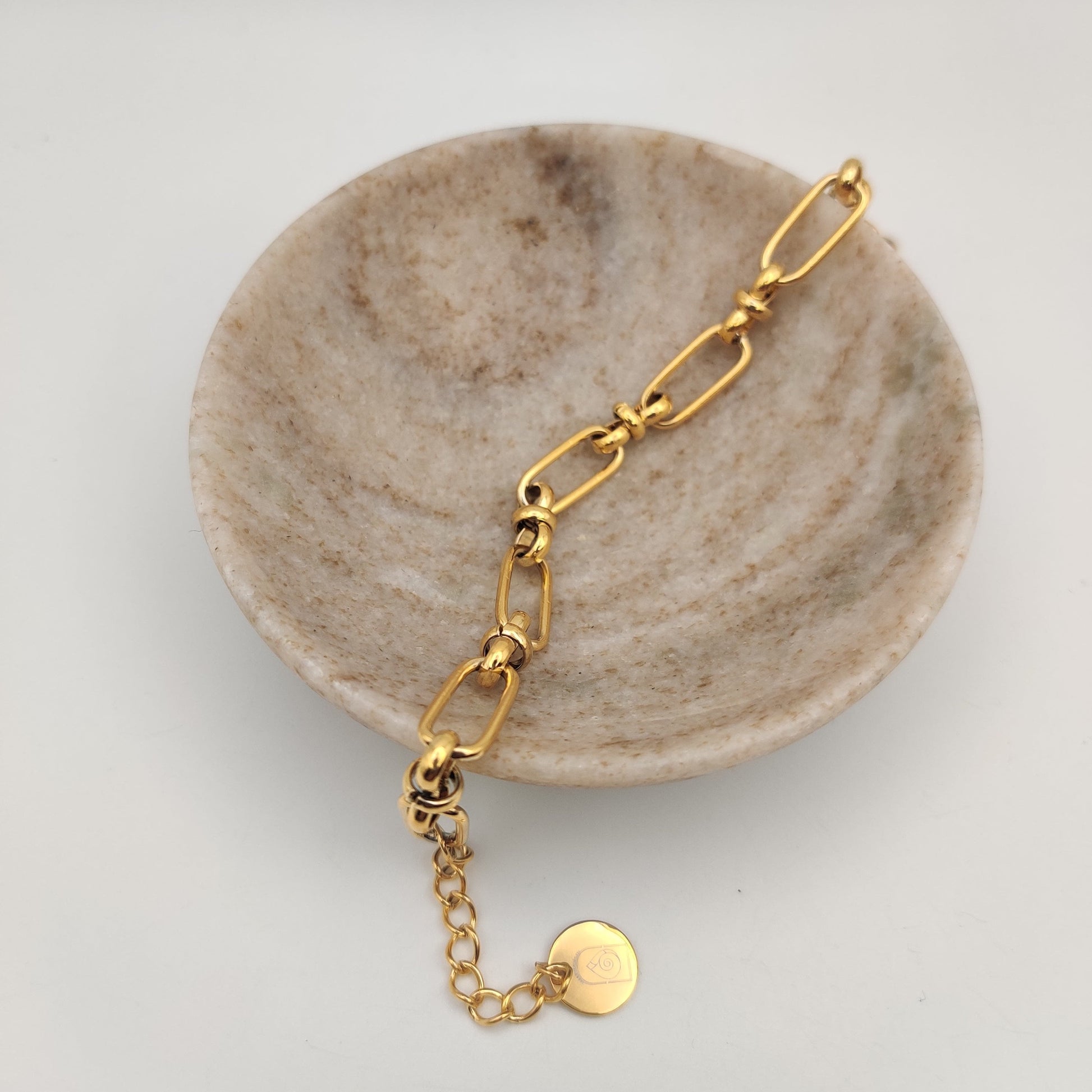This bracelet is feminine and simple. The subtle contrast between the bold lines of the paperclip style and the soft curves of the bows-style links brings a harmonious balance to the design.