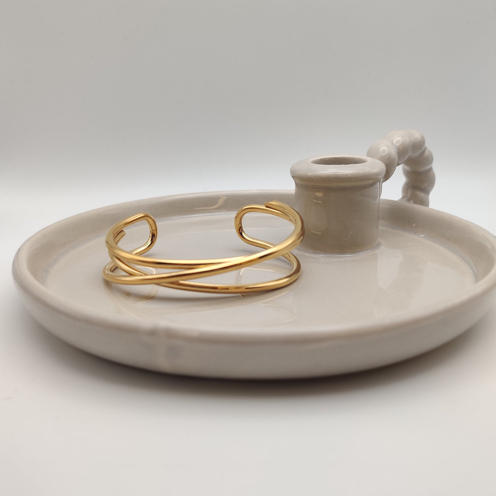 This bracelet is an embodiment of modern elegance, featuring a single wire expertly molded into this sleek pattern creating a versatile accessory for your wrist.